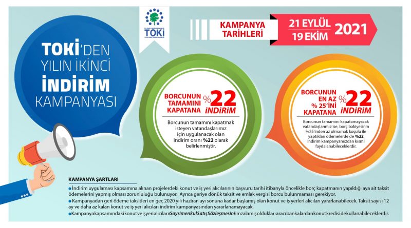 TOKİ tarafından borcunu erken ödeyip tapusunu hemen almak isteyen konut ve iş yeri alıcılarına yönelik her yıl yapılan indirim kampanyasının